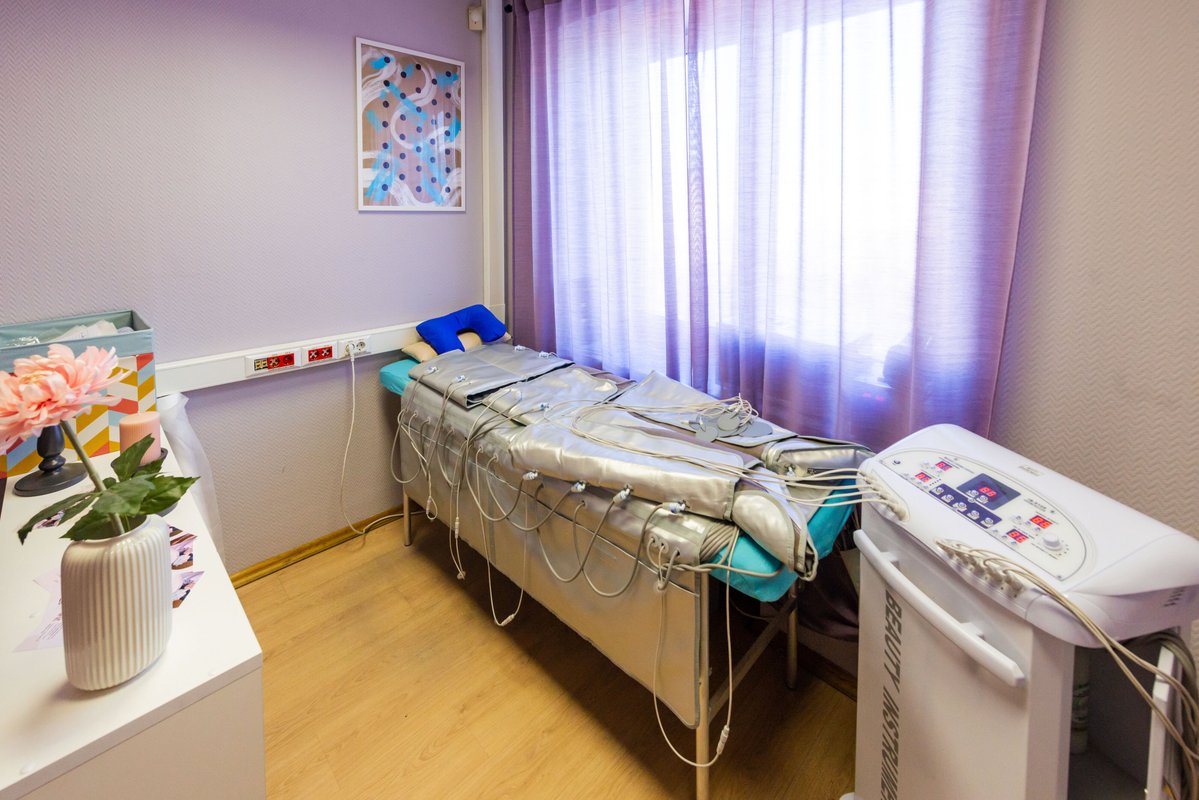 Студию я выбрала по территориальным признакам, мне делали 3 сеанса LPG массажа и 5 сеансов прессотерапии. Эти процедуры мне нравятся результатом: после их выполнения немножко уходят объёмы, получаю косметический эффект, а для стабильного результата нужен комплексный подход. Одно время прессотерапию каждую неделю делала, а LPG от случая к случаю. Для прохождения процедур мне предоставили костюм.